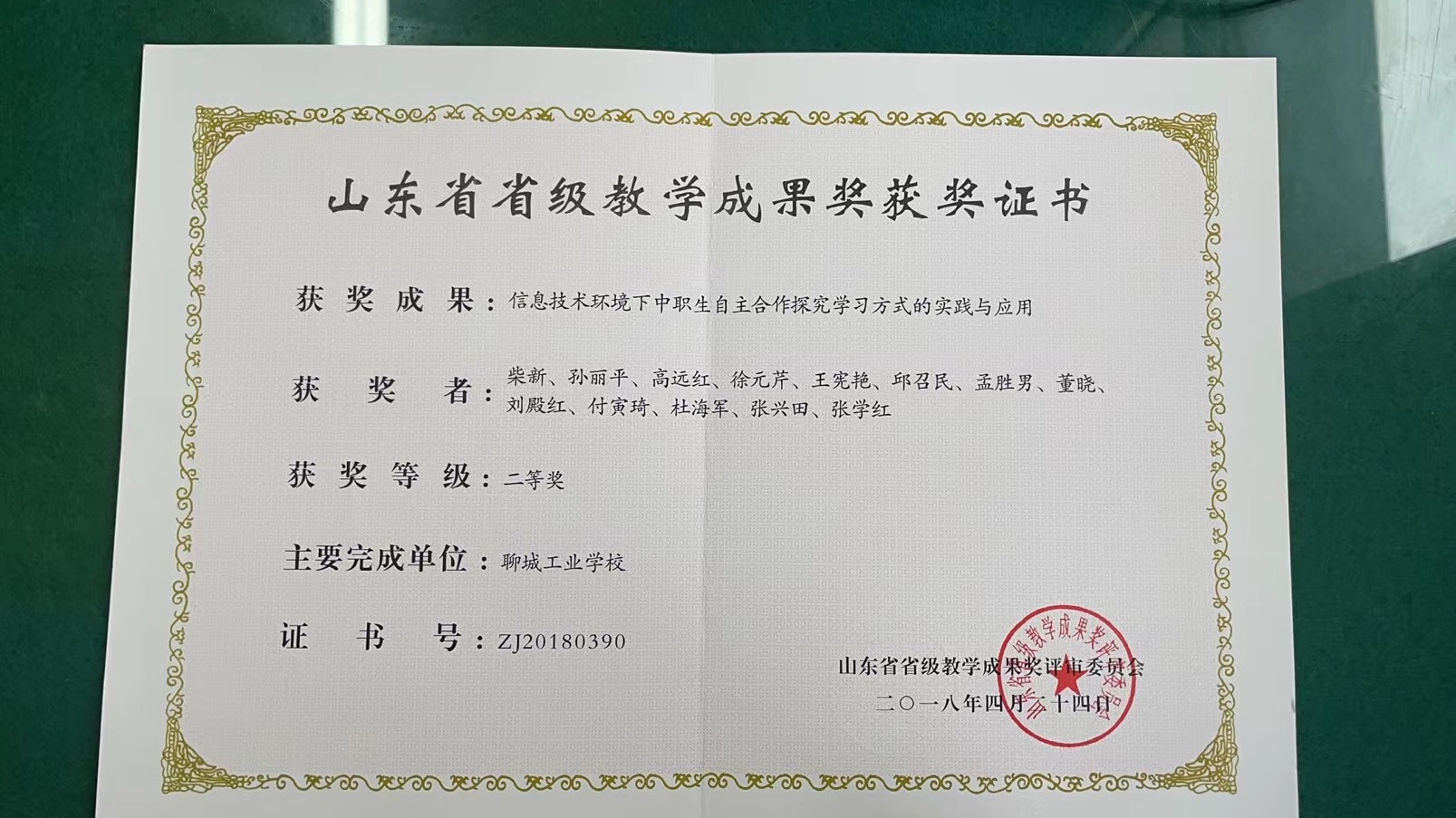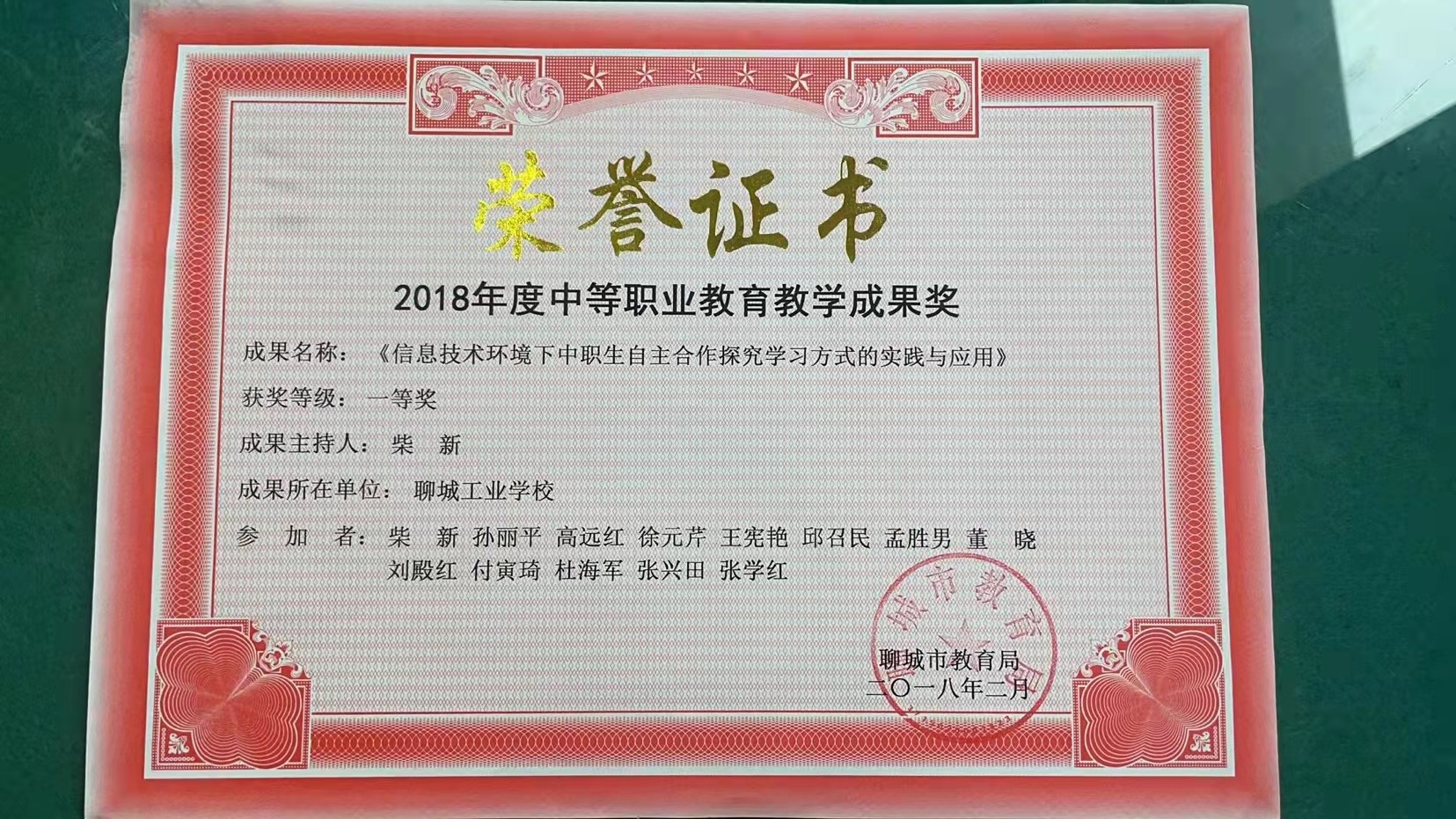 山东省教育厅网站《2018年山东省基础教育教学成果奖评审结果公示》,我校“信息技术环境下中职生自主合作探究学习方式的实践与应用”教学研究成果荣获二等奖。