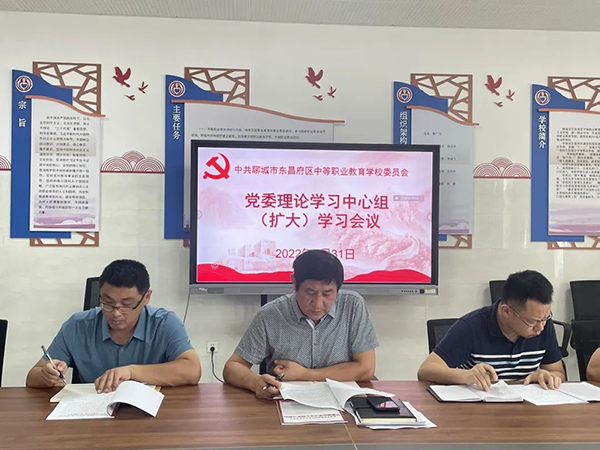 8月31日,聊城市东昌府区中等职业教育学校党委组织召开校党委理论学习中心组(扩大)会议,学习习近平总书记在迎接党的二十大专题研讨班上的重要讲话。党委书记、校长靳广力主持会议。