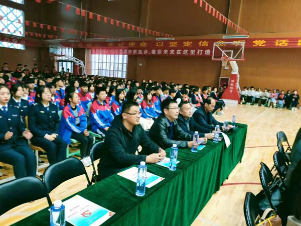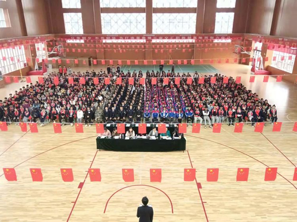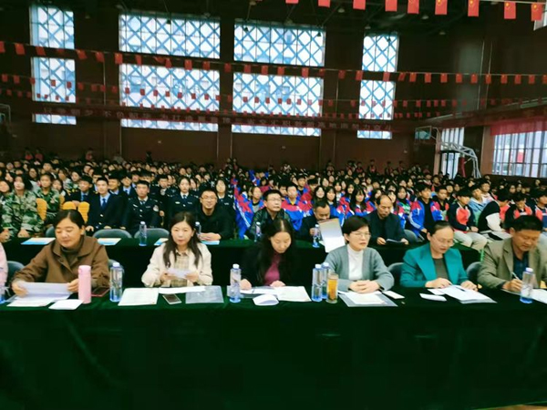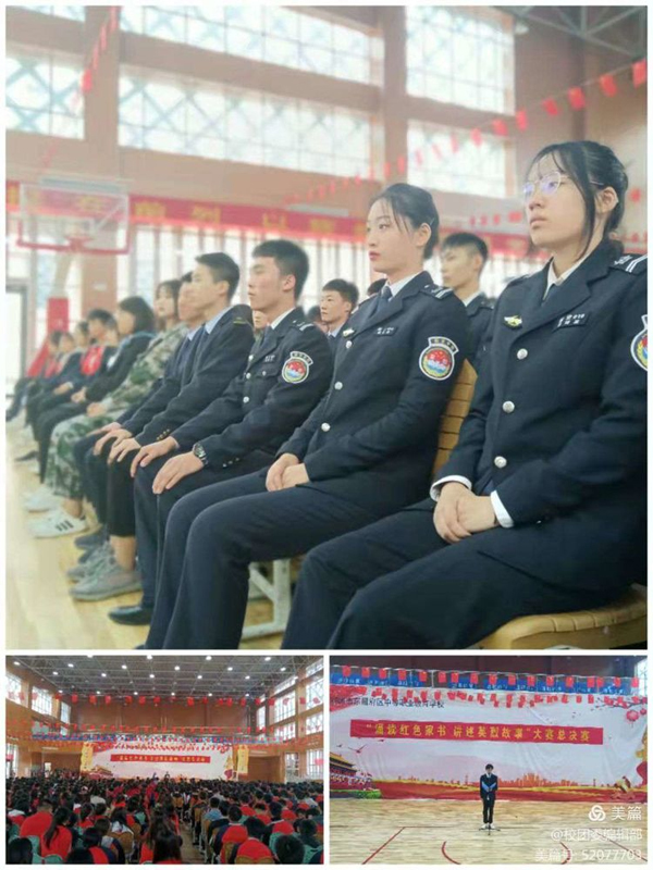 2021年10月21日,我校在风雨操场成功举办了“诵读红色家书,讲述英烈故事”诵读大赛决赛。学校副校长郑永祥,学生工作处主任李恒飞,招生就业处主任王光仑,学生工作处周正奎主任,职教高考部陈宪锋主任,招生就业处夏保亮主任出席了活动,培训处主任刘兰春,语文教研组组长王虹,资深评委吴红艳、孙晓芳、张君、罗艳霞应邀担任本次决赛评委,各教学部主要负责人、师生代表700余人观看了比赛。