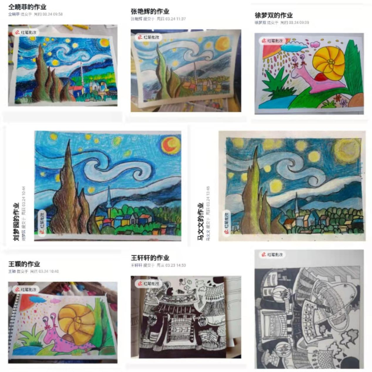 形式丰富、多姿多彩的艺术课程,让孩子们在家里也可以时时刻刻学习美术,徜徉在艺术的长河中。我校线上美术课会继续开展下去,我们将以“艺”战“疫”,静待花开!
