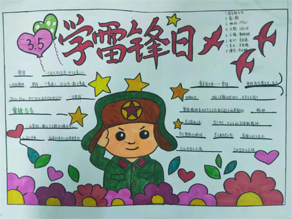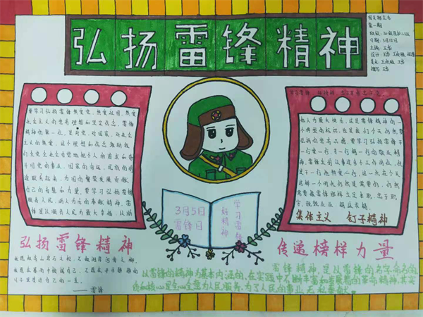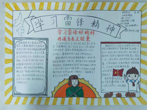 参加此次评选的全部班级充分利用手抄报这块宣传阵地,他们围绕主题,认真准备,精心设计,呈现出的手抄报图文并茂,内容丰富,进而引导学生了解雷锋,走进雷锋,践行雷锋精神。