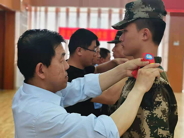 为进一步深化青少年学生的爱国主义教育,引导广大青年学子勇于肩负新时代使命,加强青年团员的思想道德建设,增强基层团组织活力,2021年6月2日下午,我校在风雨操场隆重举行2021年聊城市东昌府区中等职业教育学校国旗护卫队授衔仪式暨新团员入团宣誓仪式。学校党委委员、学生工作处主任李恒飞、学校党办主任孙建伟、学生工作处副主任周正奎、学生工作处校团委书记马斯、学生工作处张海涛老师出席本次仪式,仪式由校团委书记马斯主持。