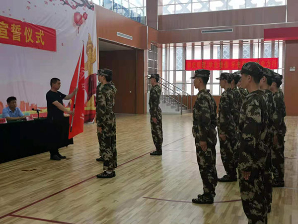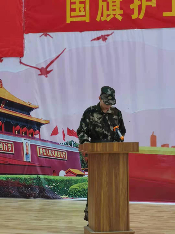 学生工作处周正奎主任宣读国旗护卫队新队员名单并做重要讲话,新队员们通过一个多月的半军事化训练和管理教育,国旗护卫队22名学生正式从一名普通的学生朝着军人方向转变,田培鑫欣任国旗护卫队队长兼升旗手,丁宇、温申皓任护旗手。队员们在队长的带领下面向国旗庄严宣誓:爱护国旗,视国旗为第二生命,做捍卫国旗的钢铁卫士,铿锵的誓言和满腔的热情表达了爱国、爱旗、爱校的感情。