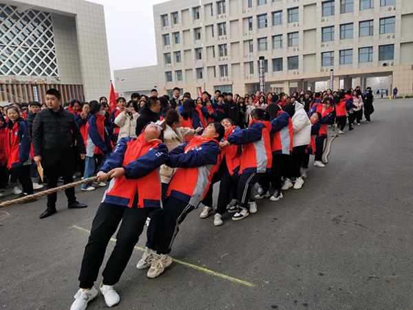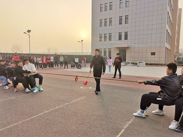 随着裁判吹响了比赛的哨声,各班的参赛队员们紧握长绳,卯足了劲,拼命往后拉,柔软的长绳瞬间变成了一条直线。未参加的同学自发组成拉拉队为比赛队员呐喊加油,掌声、呐喊声此起彼伏,现场激烈的比赛将整个活动推到高潮!