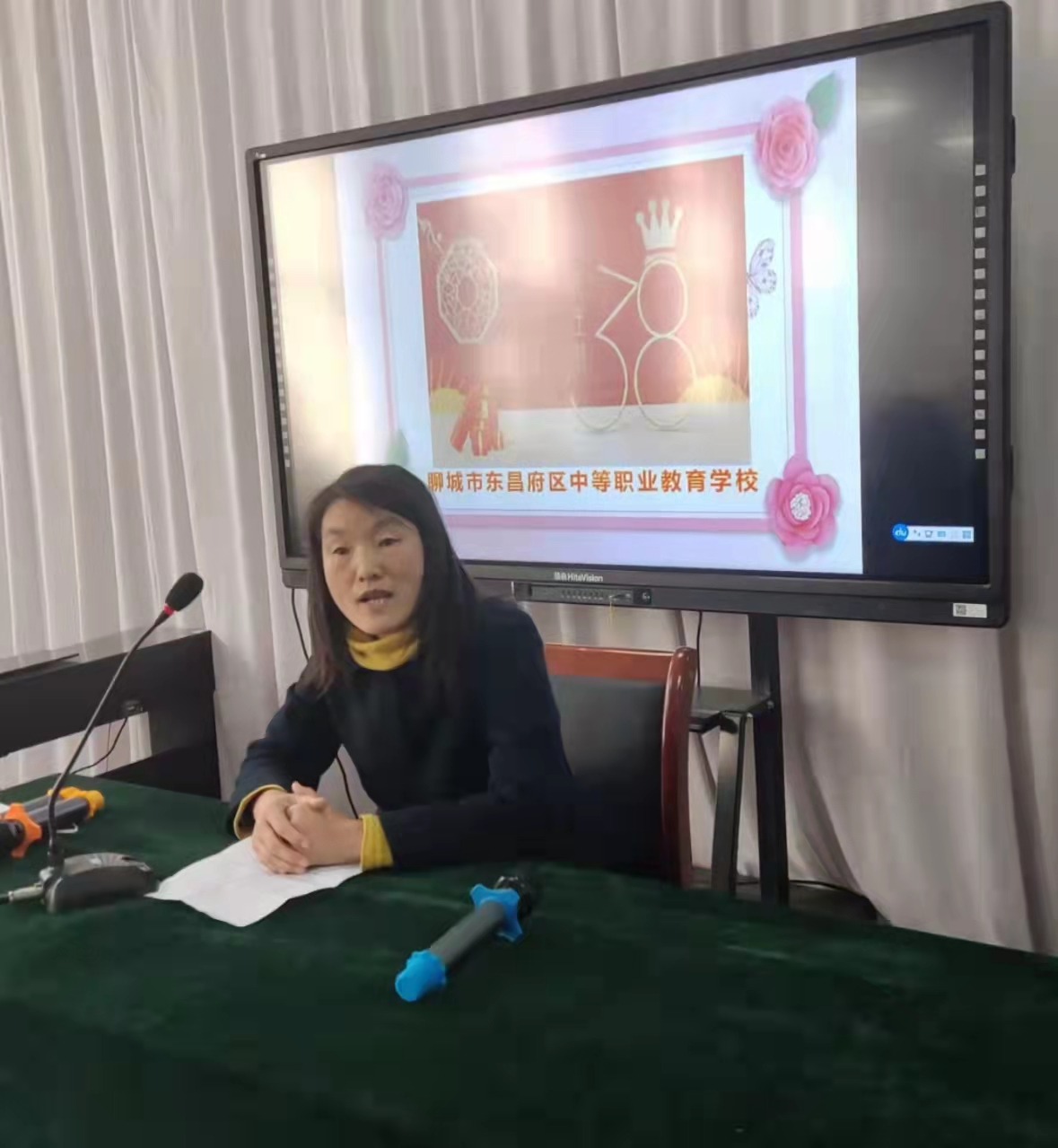接着,妇联主任高丽平发言,她肯定了女教师们一年以来的工作和付出,并祝愿大家节日快乐,生活幸福美满!