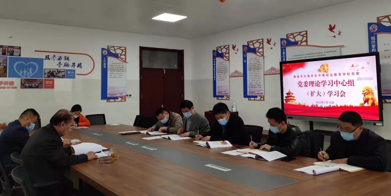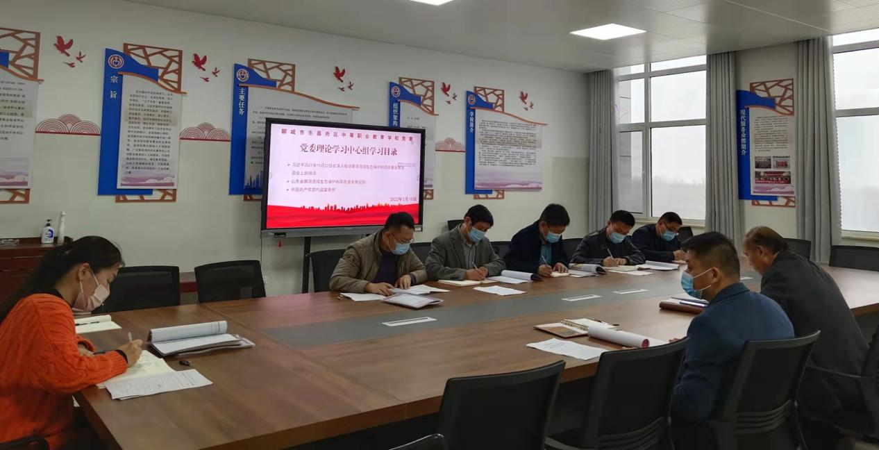 2022年3月16日下午,聊城市东昌府区中等职业教育学校党委理论学习中心组开展集体学习,围绕习近平总书记在深入推动黄河流域生态保护和高质量发展座谈会上的重要讲话精神进行专题学习和交流研讨。学校党委副书记张振河主持会议,党委班子成员和各科级干部出席会议。