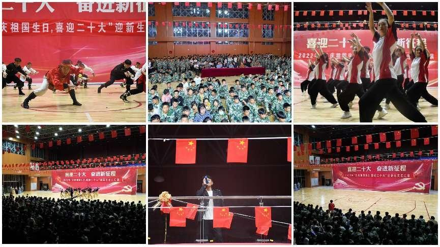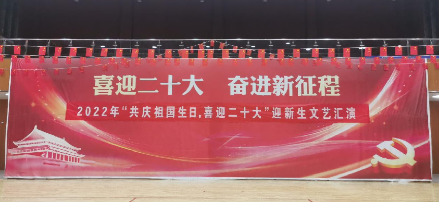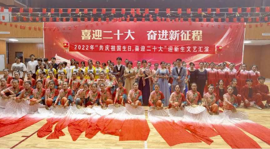 2022年9月28日,由团委主办的聊城市东昌府区中等职业教育学校2022年“共庆祖国生日,喜迎二十大”迎新生文艺汇演在风雨操场隆重举行。学校教务处主任柴新、总务处主任梁国坤、招生就业处主任王光仑、学生工作处副主任周正奎出席演出并与我校1600余名新生一同观看了这场青春盛宴。