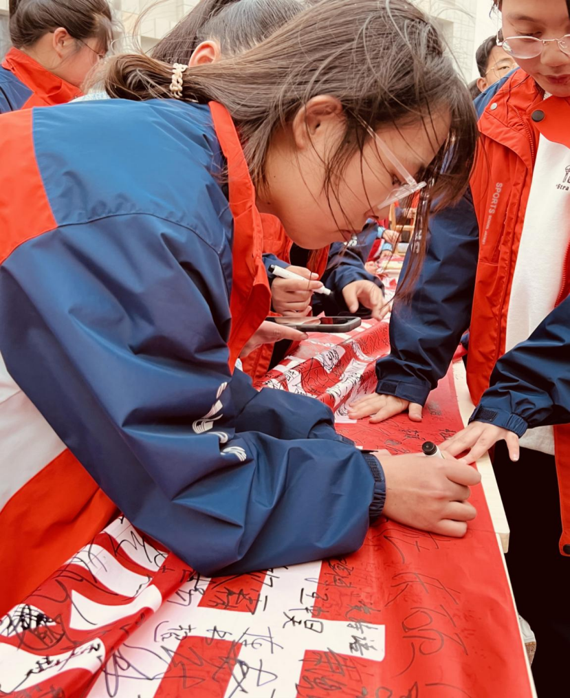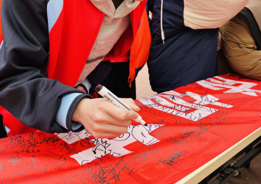 全体学生在学生工作处教师和校学生会干部的引导下踊跃进行签名活动。