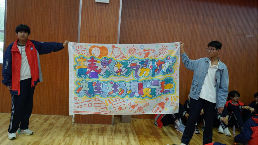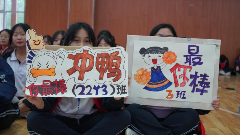 各班的啦啦队员更是不甘示弱,加油声此起彼伏,一阵比一阵响亮。整个比赛过程掌声雷动,笑语连连,整个风雨操场里呈现出一片快乐、健康、向上的景象。