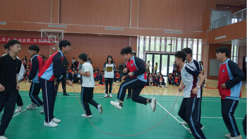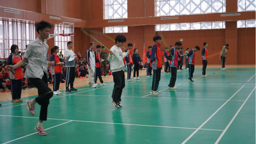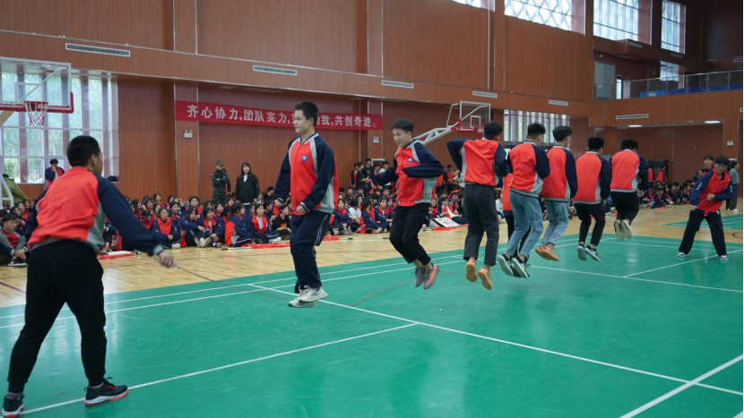 长长的一根绳,不仅连接了你我,更将班级里的每一个同学连接在了一起,挥动的长绳如银蛇飞舞,跳动的学生如彩蝶纷飞。同学们之间配合默契共同努力,他们用手中的绳子将自己的速度、耐力、力量等方面尽情展示,稳健的脚步、超强的爆发力、灵活的律动。每个人心中都秉持着为集体争光添彩的信念!